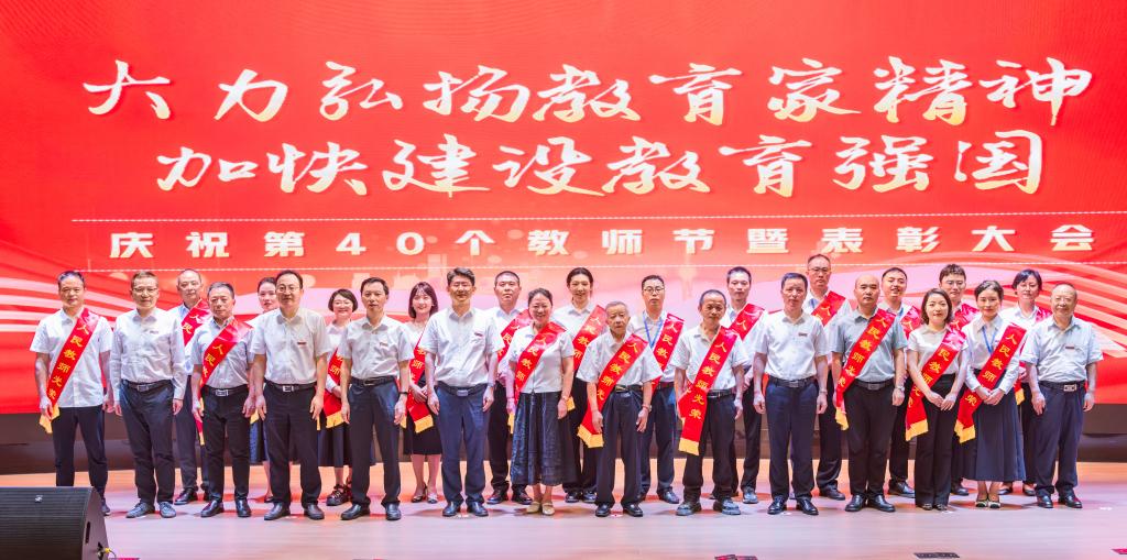 四十年春风化雨,四十年桃李芬芳。9月10日,学校在第一学术报告厅举行庆祝第40个教师节暨表彰大会。学校党委书记郭天平讲话,党委副书记张荣宣读表彰奖励决定。全体在家校领导、党委委员与400多名教师欢聚一堂,共同庆祝第40个教师节。大会由党委副书记、院长周传德主持。