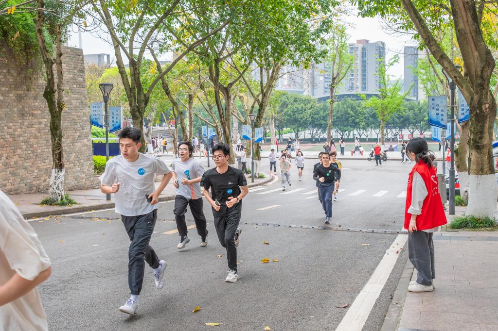 阳光明媚,气候宜人,正是奔跑好时节。活动现场设置了多个功能区域,检录区、休息区、医疗保障区等,为参赛师生提供细致周到的服务。赛道全程定点驻守志愿者,为参赛师生做好方向指引。参与活动的师生们早早来到活动现场,在身着统一制服的志愿者们引导下有序签到,领取参赛号码牌和活动纪念品。大家精神抖擞、热情高涨,脸上洋溢着阳光自信的笑容,准备在赛道上一展身手。