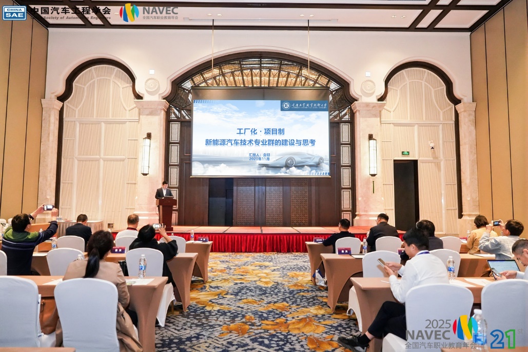 11月14日至16日,第21届全国汽车职业教育年会(NAVEC 2025)在广州举行。本届年会以“破界融合、数智跃迁”为主题,采用“会展一体”形式,聚焦汽车产业变革与职业教育发展。学校副校长秦传江、李雷带领车辆工程学院相关负责人参会。大会吸引了千余位来自全国汽车相关职业院校的领导、学科带头人、一线教以及汽车企业高管、人力资源与技术研发负责人参会。