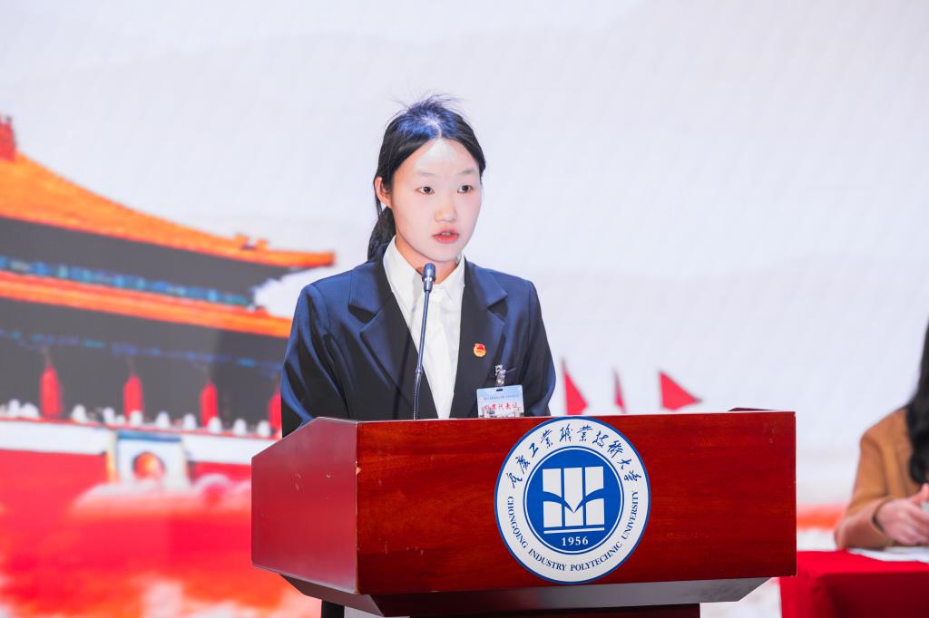 重庆工业职业技术学院第九届学生会主席团成员刘语涵代表第九届学生会作工作报告,系统回顾了过去一年学生会在思想引领、权益服务、校园文化、组织建设等方面的工作成果,并展望未来发展方向。