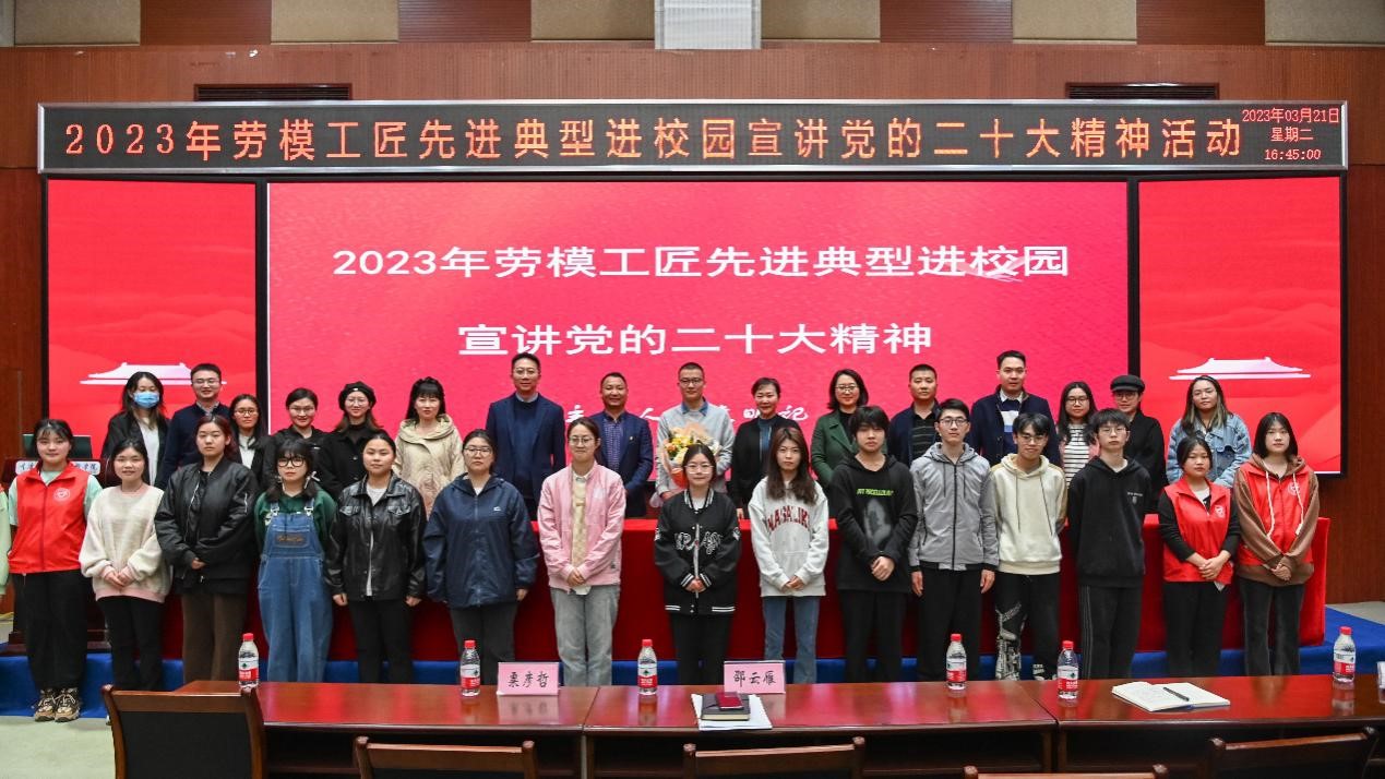 会上,全体与会人员观看了学习视频《党的二十大精神劳动模范篇》,认真领悟党的二十大精神。随后,袁明记作题为《弘扬工匠精神,永攀技术高峰》的专题报告,围绕自身的奋斗历程、职业生涯的成长历程和新时代工匠精神的理解等方面做了详尽的阐述。报告主题鲜明、论述深刻,内容情真意切、深入人心,获得了现场阵阵掌声。袁明记求学时期的班主任周永福老师还分享了如何在“用好一个平台、抓住一个途径和做好一个引导”上把学生培养成才。在交流互动环节,袁明记与全体师生围绕如何培养“工匠精神”以及培养卓越“大国工匠”等热点话题展开互动交流,现场气氛活跃热烈。