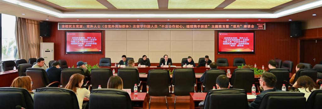 11月14日下午,学校党委书记王官成在办公楼三楼会议室主持召开了民主党派、党外人士(含党外高知群体)及留学归国人员“不忘合作初心、携手继续前进”主题教育暨“双月”座谈会。学校党委组织部、党委宣传部、党委教师工作部、人事处、教务处、产教融合发展研究中心、科研与合...