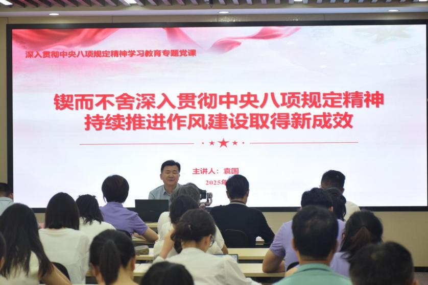 106月9日,学校党委委员、副院长袁国以《锲而不舍深入贯彻中央八项规定精神持续推进作风建设取得新成效》为题,为财务与资产管理处(采购与招投标中心)、基建后勤处、经济与管理学院师生党员讲授专题党课。此次党课紧扣中央最新文件精神,紧密结合学校实际工作,深入阐释了中央...